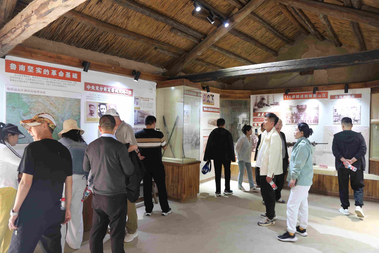 午后,職工們前往八路軍115師抱犢崮抗日紀(jì)念園。這座占地6000平方米的紀(jì)念園,以1939年115師司令部進(jìn)駐葫蘆套村為歷史背景,通過紀(jì)念館、政治部舊址、王麓水紀(jì)念館等展館,再現(xiàn)了軍民“水乳交融、生死與共”的抗戰(zhàn)場(chǎng)景。在解說員引導(dǎo)下,職工們駐足觀看展柜中的老照片、槍支彈藥等文物,聆聽“淵子崖保衛(wèi)戰(zhàn)”等悲壯故事。這場(chǎng)由農(nóng)民自發(fā)組織的戰(zhàn)役中,242名村民以血肉之軀抗擊日軍,最終斃敵百余人,被譽(yù)為中國抗戰(zhàn)史上“農(nóng)民浴血保衛(wèi)戰(zhàn)的典范”。