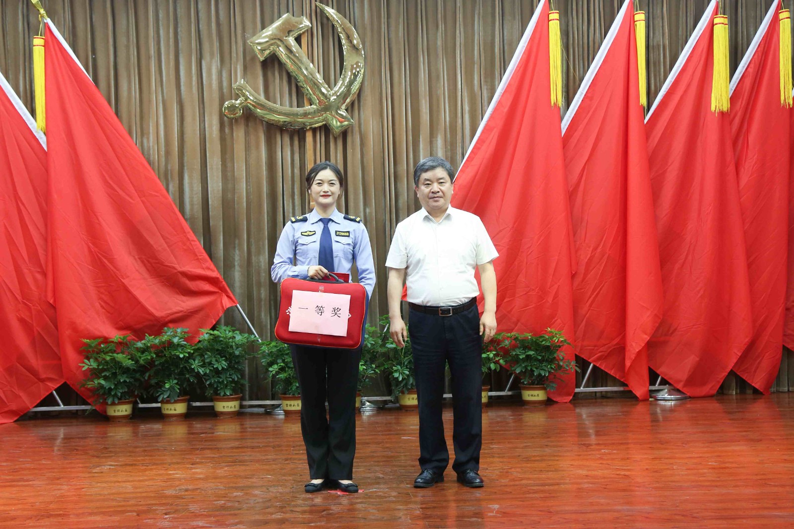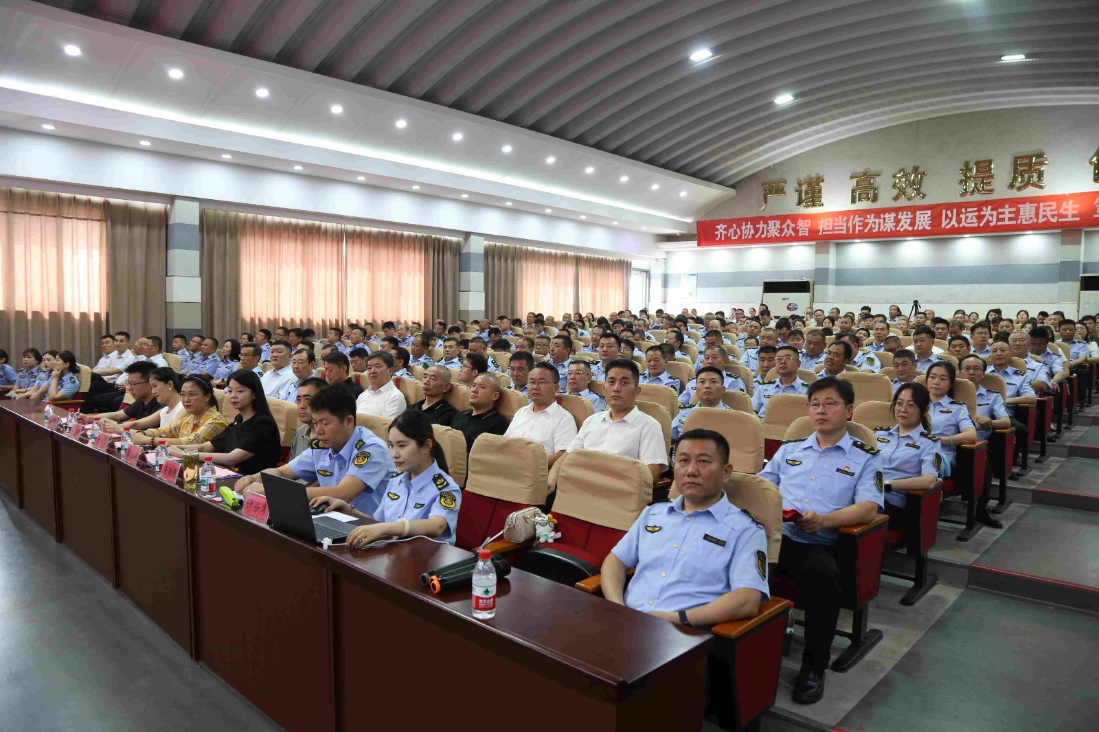 滕州市交通運輸局黨組書記、局長孟祥磊,局黨組成員、二級主任科員葛瑞良,局黨組成員、副局長殷勤,局黨組成員、副局長趙強,局黨組成員、交通運輸綜合行政執(zhí)法大隊大隊長高位祥,市交運集團黨委書記、董事長劉明等領(lǐng)導出席活動。局屬有關(guān)單位、相關(guān)運輸企業(yè)職工代表300余人現(xiàn)場觀賽。