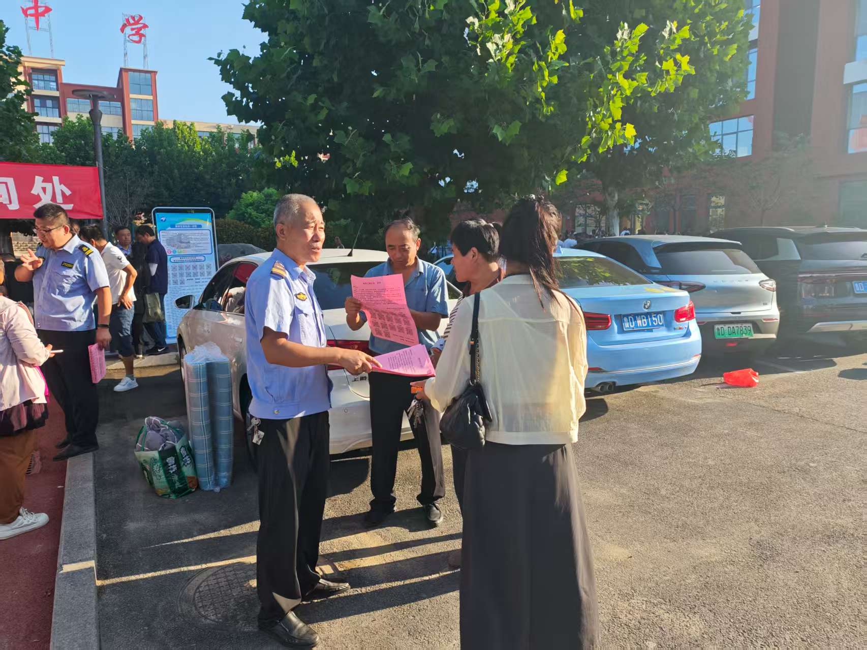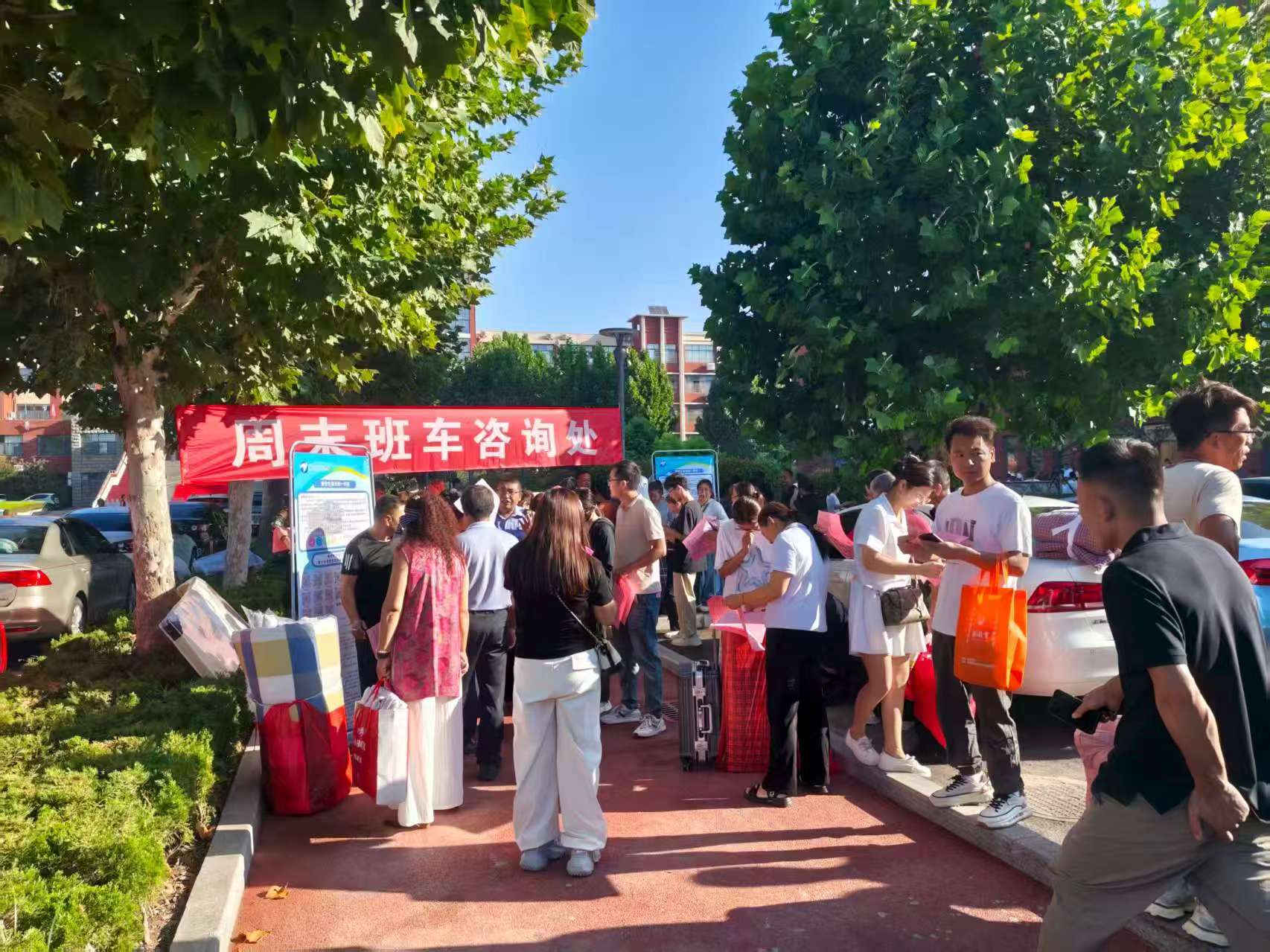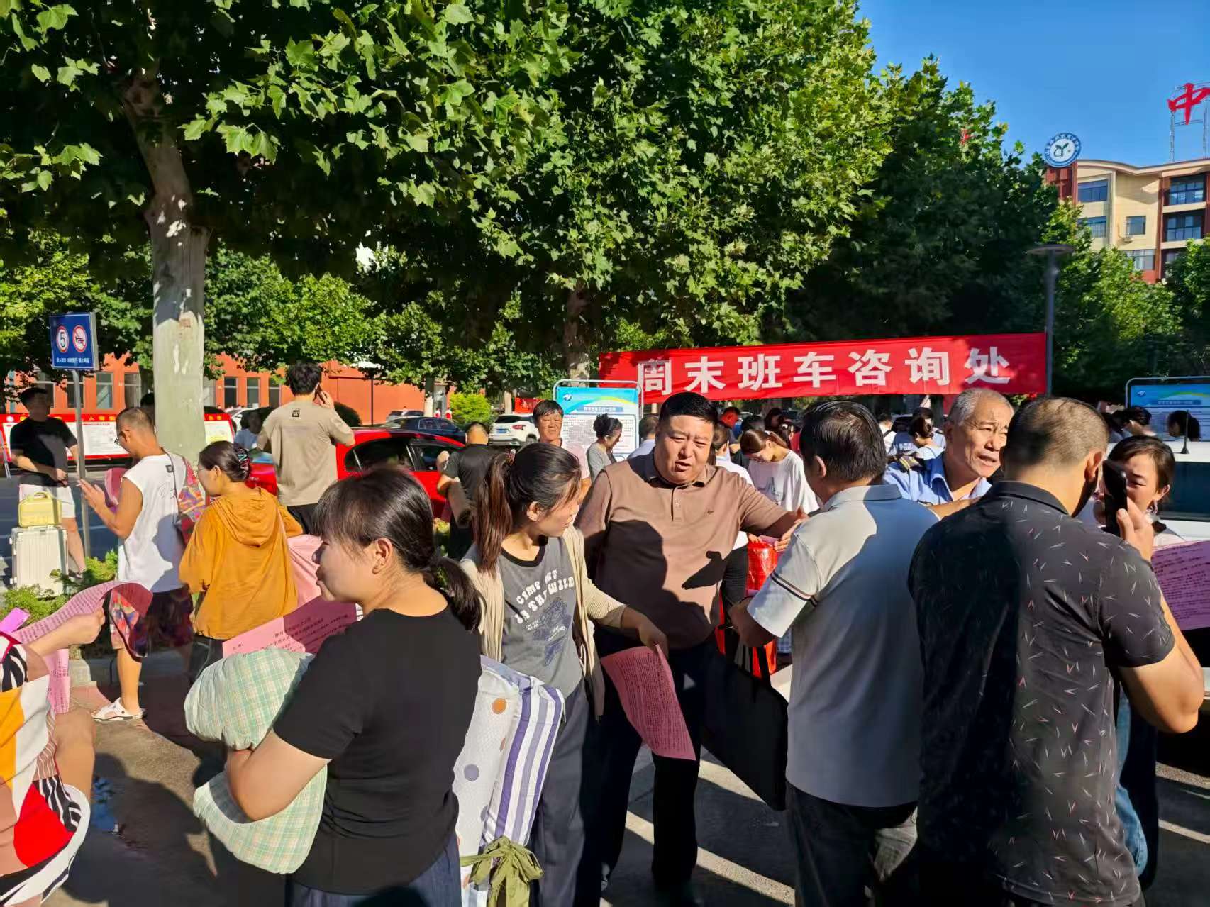 根據(jù)育才中學(xué)初一新生報到時間安排,公司工作人員提前抵達(dá)校園。他們迅速懸掛起“周末班車咨詢處”的醒目橫幅,擺放好咨詢臺、宣傳展板及登記表格,并同步向到校家長發(fā)放3000余份定制宣傳單頁。單頁內(nèi)容涵蓋周末班車線路圖、發(fā)車時間、票價優(yōu)惠等關(guān)鍵信息,并附有二維碼方便家長線上查詢。