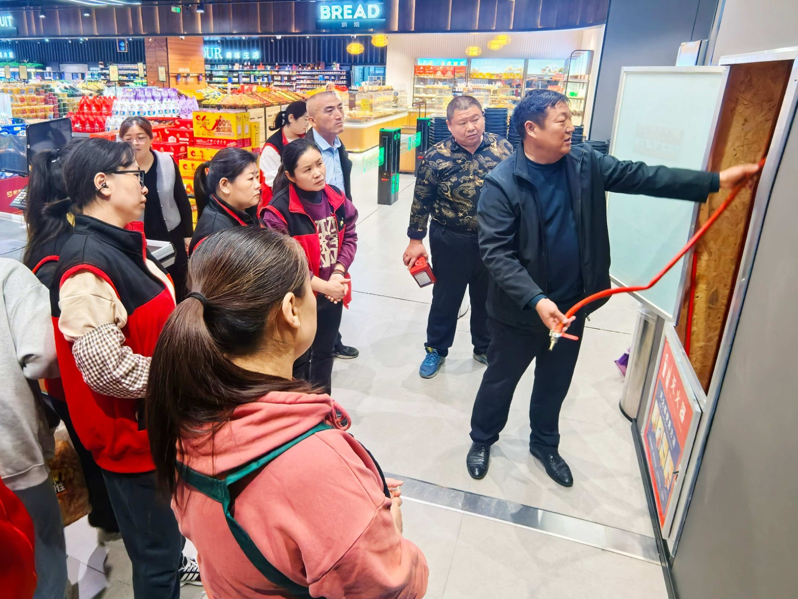 此次演練模擬超市突發(fā)火情場景。隨著消防警報響起,超市員工立即啟動應急響應程序,各崗位人員按照應急預案分工協(xié)作,迅速引導顧客沿安全通道有序疏散。同時,超市微型消防站隊員第一時間趕赴現(xiàn)場,利用滅火器、消火栓等器材進行初期火災撲救。