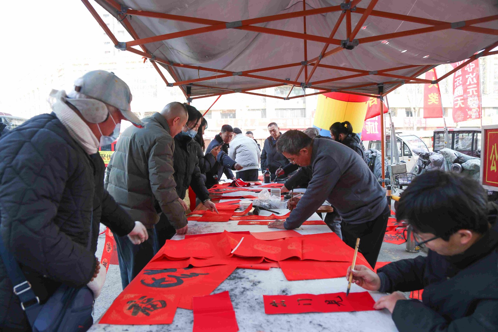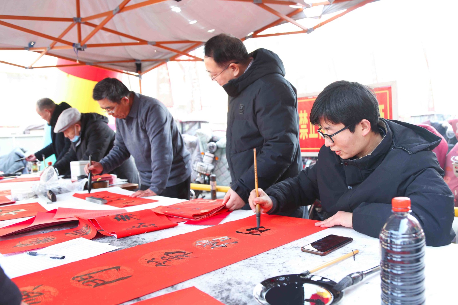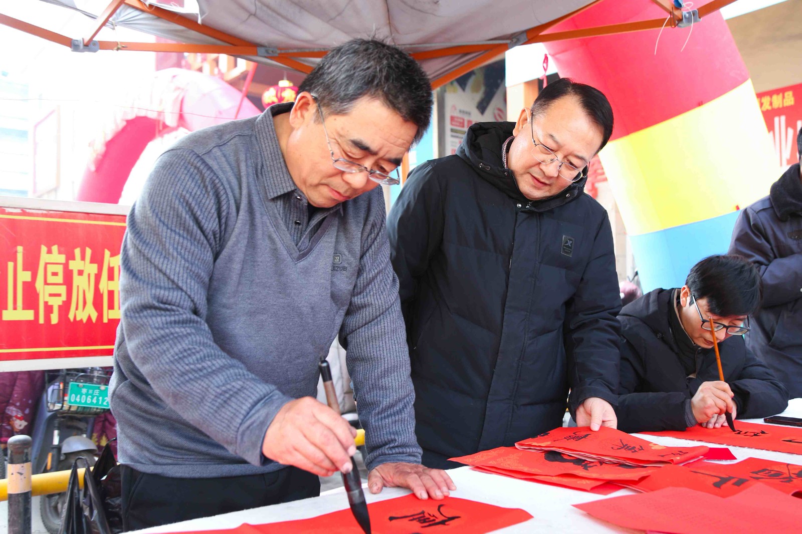 活動(dòng)現(xiàn)場墨香四溢,氣氛熱烈。書法家們鋪紙研墨,筆走龍蛇,將美好的祝愿傾注于一筆一畫之間。一幅幅寓意吉祥、墨香沁人的春聯(lián)和一個(gè)個(gè)飽滿有力的“福”字躍然紙上,既有對(duì)生意興隆、平安順?biāo)斓膫鹘y(tǒng)祈愿,也飽含了對(duì)家國安康、幸福生活的時(shí)代禮贊。